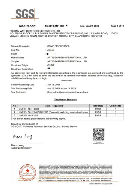 Finition et revêtement: Appliquez des finitions et des revêtements résistants aux intempéries pour protéger les meubles de l'humidité, de la décoloration et de la corrosion.Effectuer des essais réguliers pour assurer la durabilité et la longévité de ces revêtements.